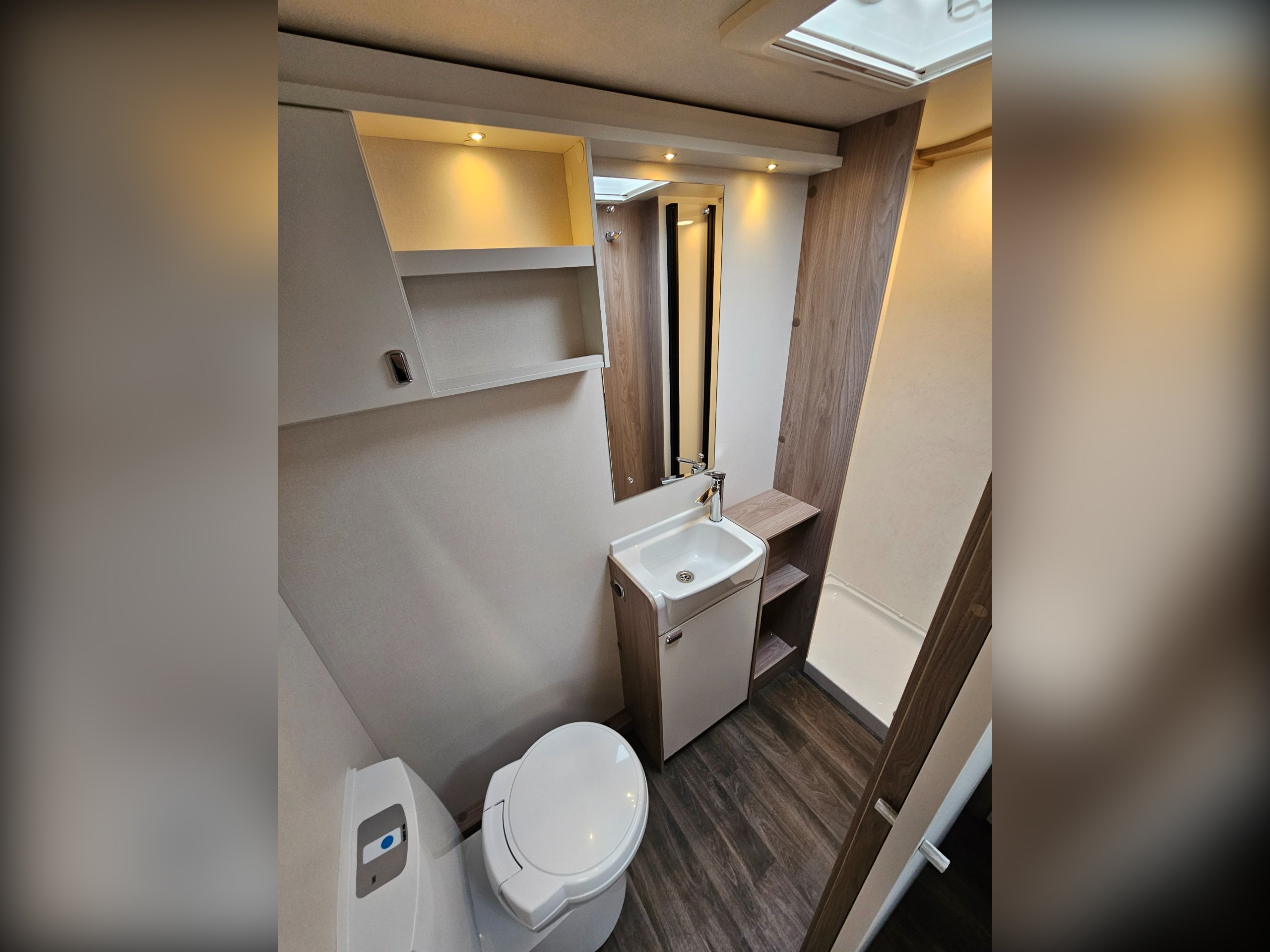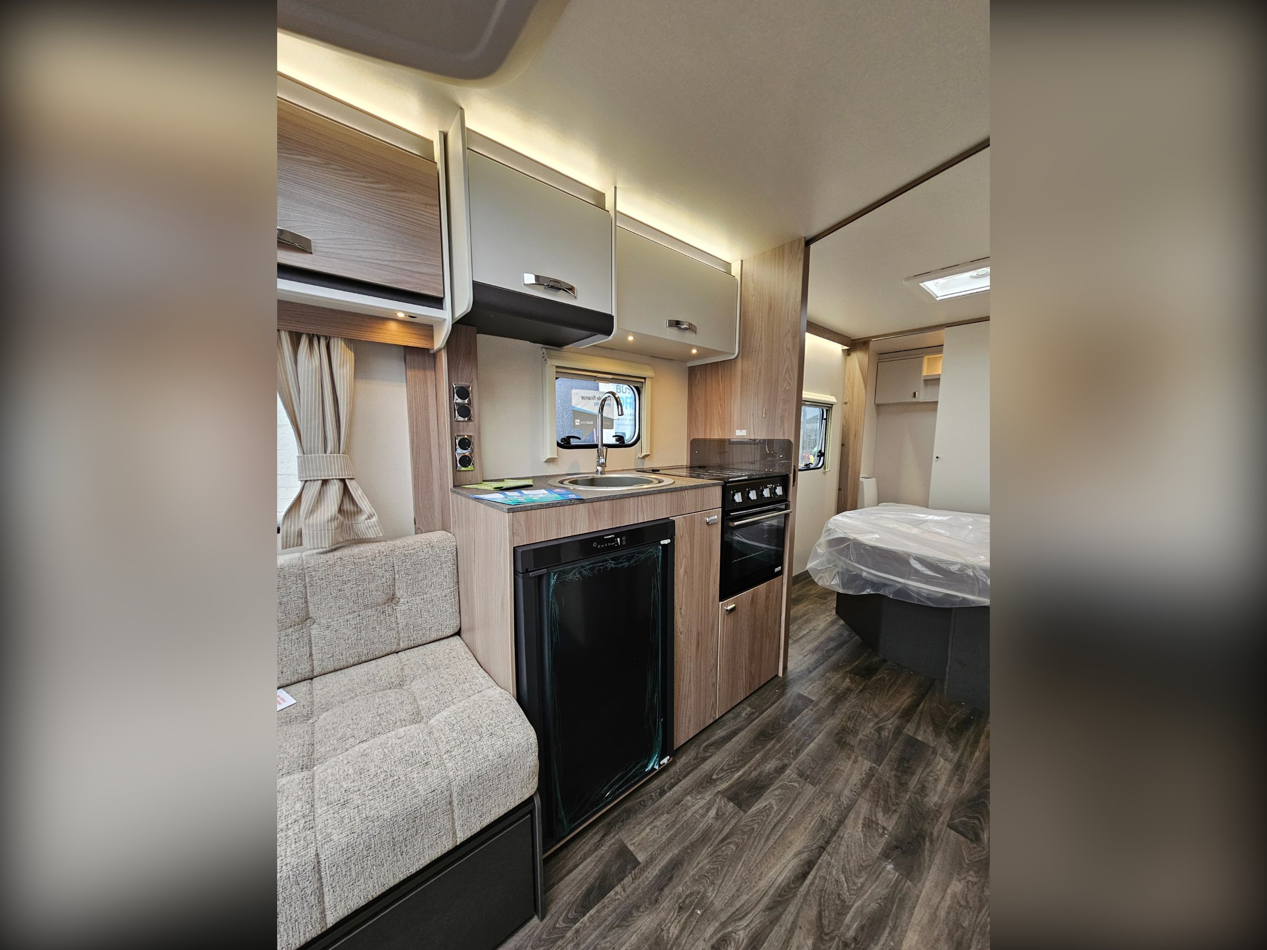 Standard Sprite specification includes...14" alloy wheels, smart grey accents and decals including a gloss grey gas locker door, LED lighting inside and out, Dometic fridge freezer, Thetford combined oven and grill along with a 3-burner gas hob. You'll also find SMART+ construction utilising GRP and PURE materials throughout minimising any timber use and 'Cherub' soft furnishings with sprung seat bases for comfort, Sangallo Elm and Toro/Grau veneers to make everything bright and airy.