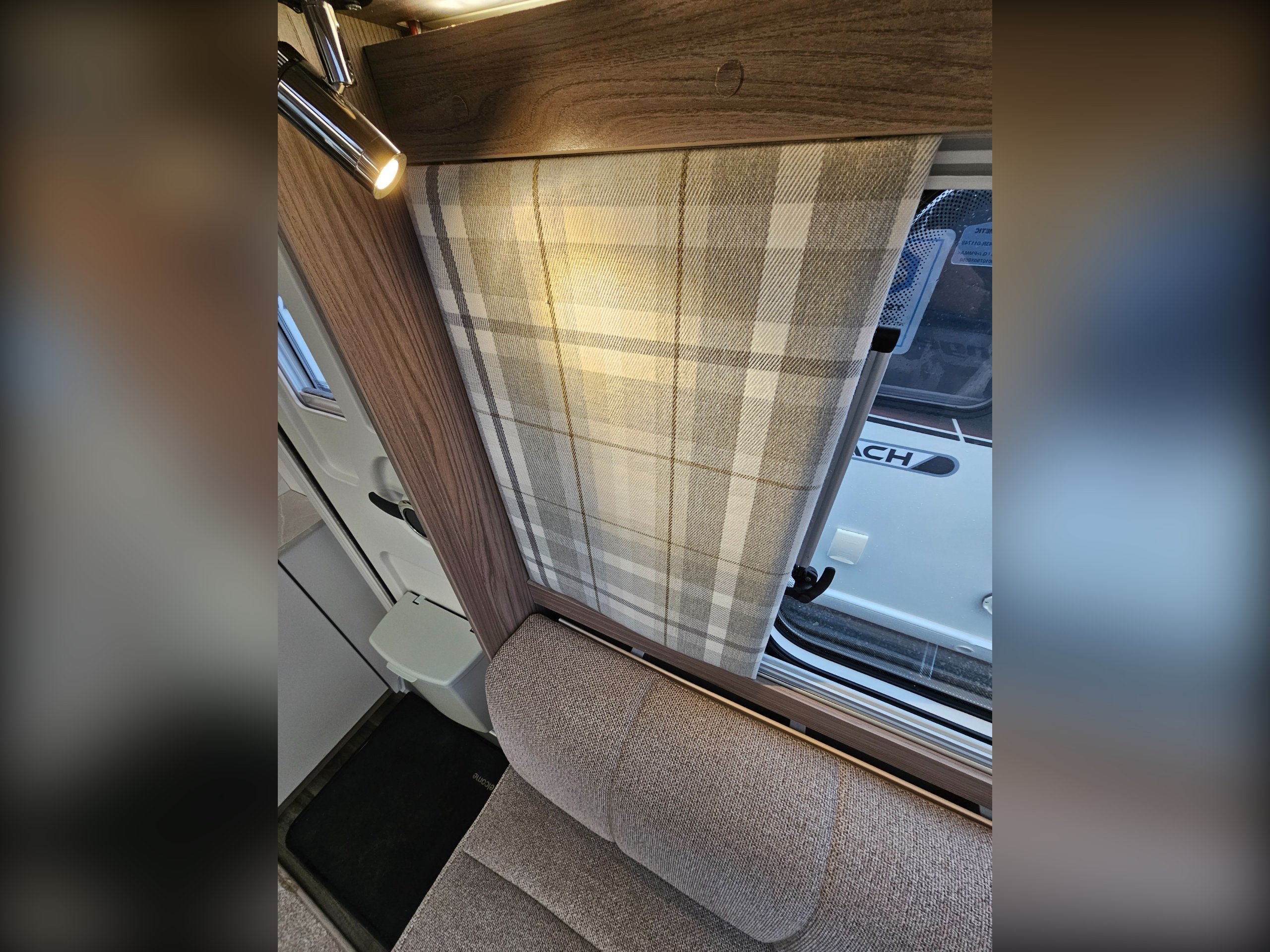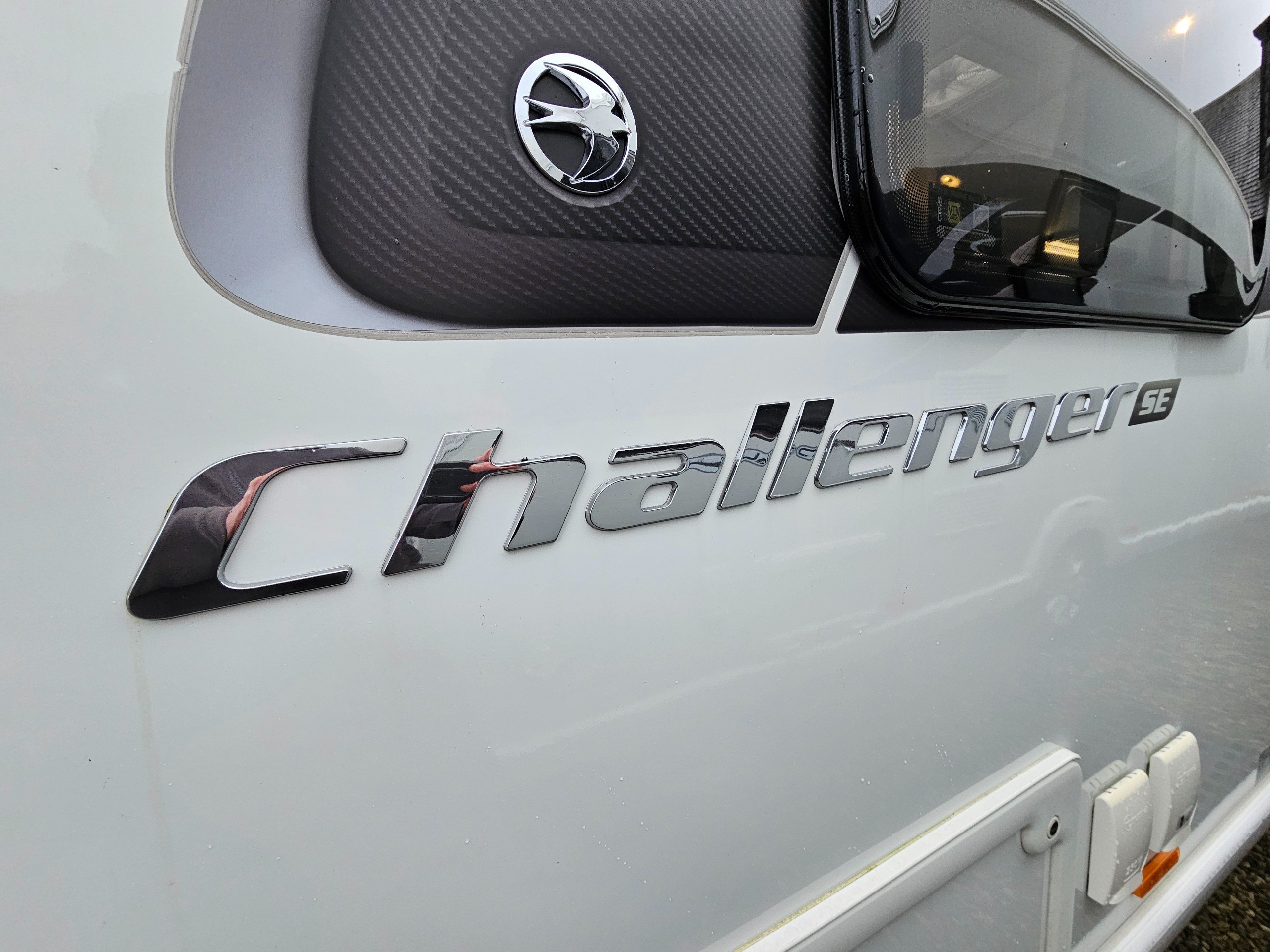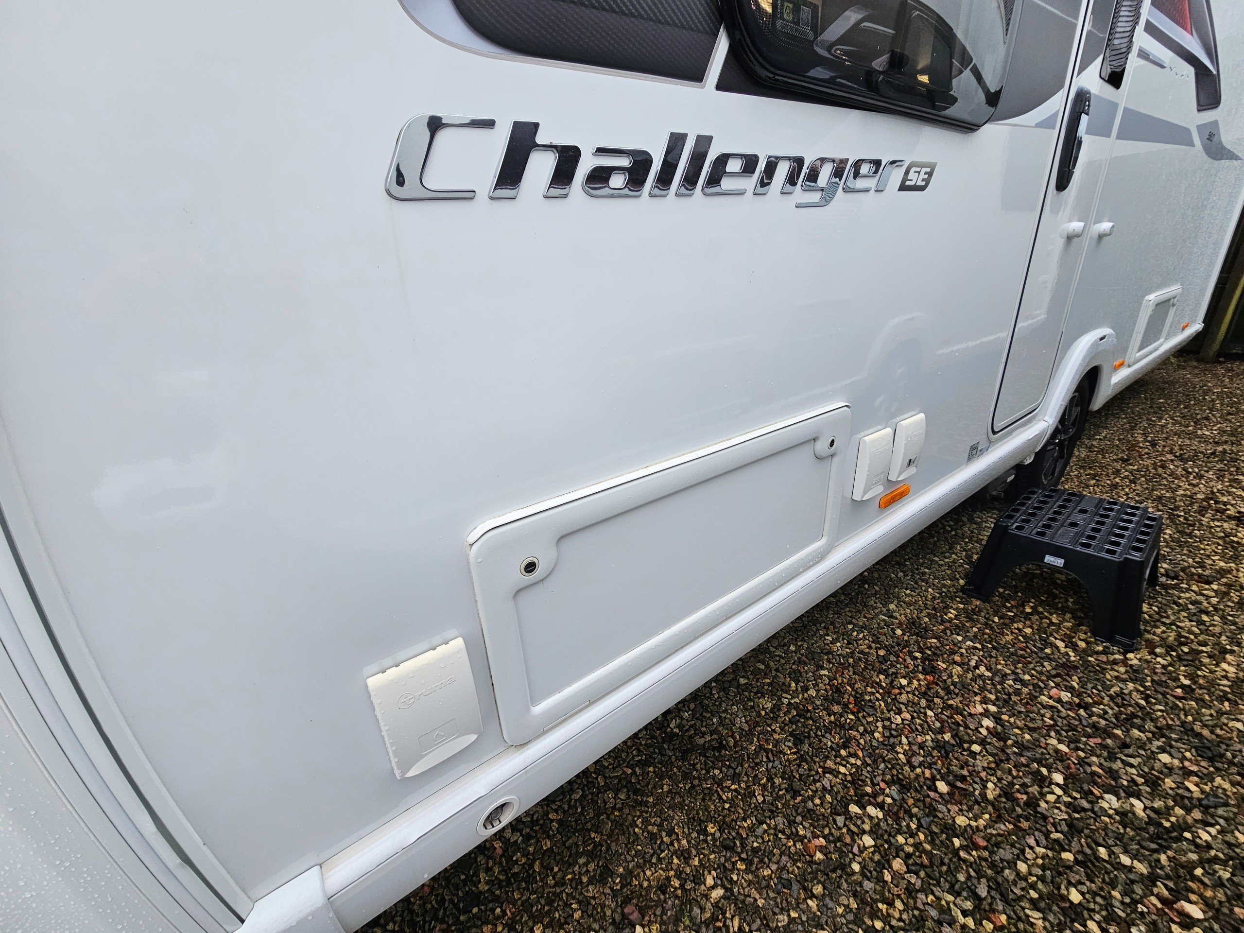 This is a popular, 4-berth tourer with a parallel seat lounge, transverse, island bed, rear washroom and all the Challenger specification you would expect an acrylic kitchen splashback, a dual fuel hob for the Thetford cooker, ALDE heating system, remote alarm, exterior BBQ and 230v points and a Truma roof mounted 100w solar panel.