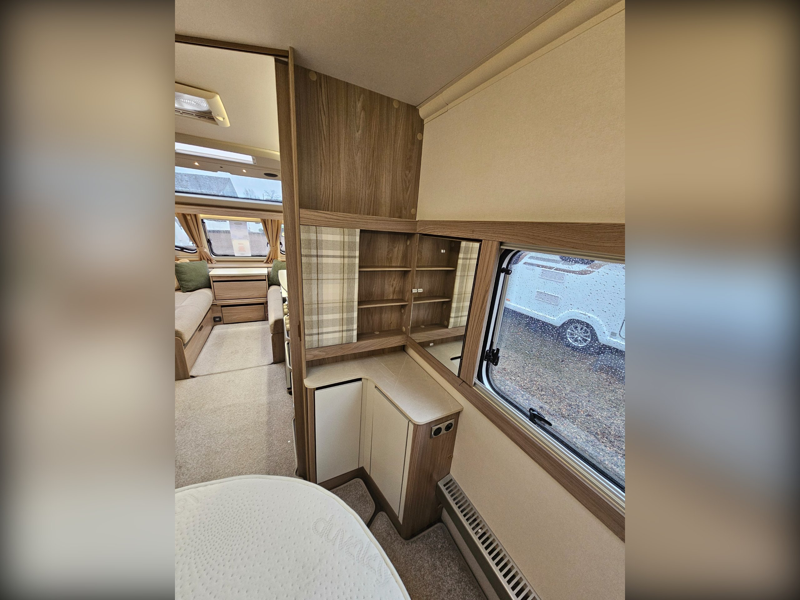 This has the optional 'SE' specification and adds many extras including but not limited to, ALKO ATC, omni-vent extractor, exterior TV/12v point, Truma waterline, heavy duty corner steadies and much more including access to under the bed from either the near or offside from the exterior! SMART construction techniques give a timberless structural design bolstered by resilient GRP sidewalls, hail resistant roof and a outer skin for the floor all giving added durability from the elements.