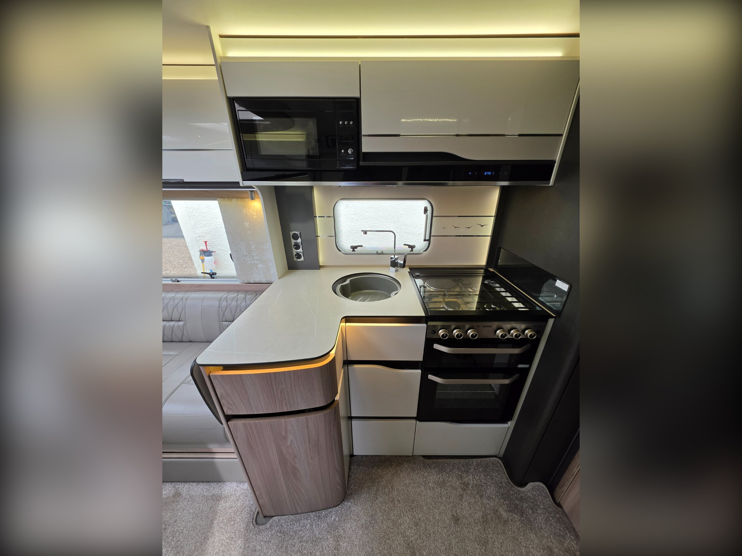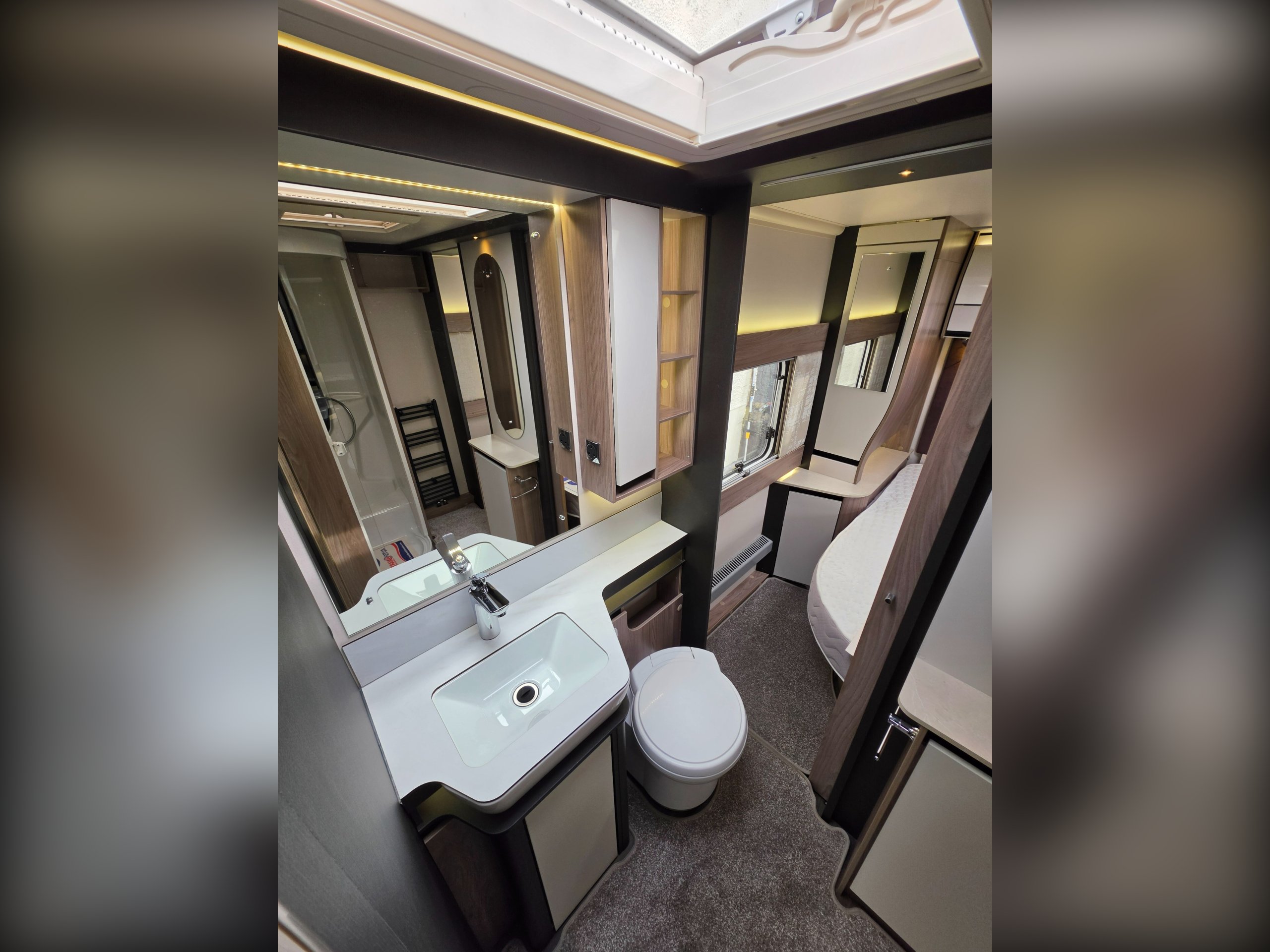 The 850 is a brilliant layout with a rear-bedroom, centre-washroom configuration. A spacious lounge with L-shaped seating gives you an entertainment area to the nearside.