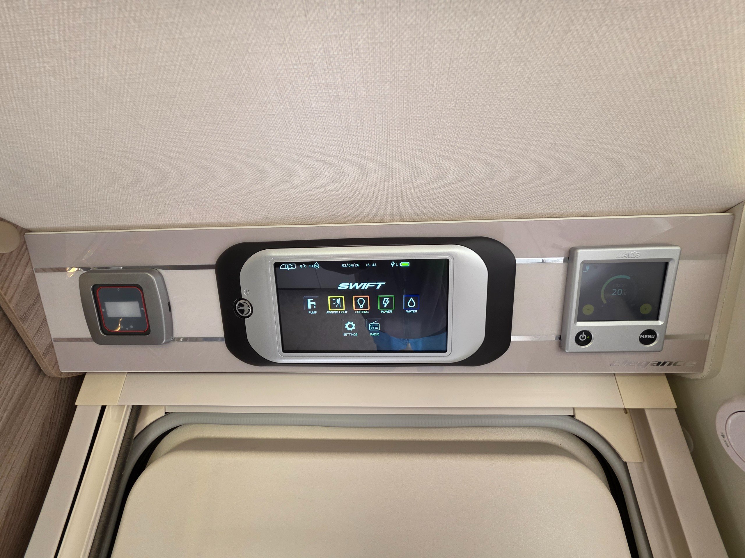 This twin-axle, 8-foot wide tourer has a brilliant standard specification, which includes...Ultraleather Dusk soft furnishing scheme, ALDE heating including underfloor heating, 30-litre on-board fresh water tank, kitchen extractor hood, flat-bed microwave, tall, slimline Dometic fridge, Swift Command control system, 100w roof mounted solar panel, ALKO ATC, exterior BBQ and 230v sockets, exterior shower point, exterior TV socket and much, MUCH more!