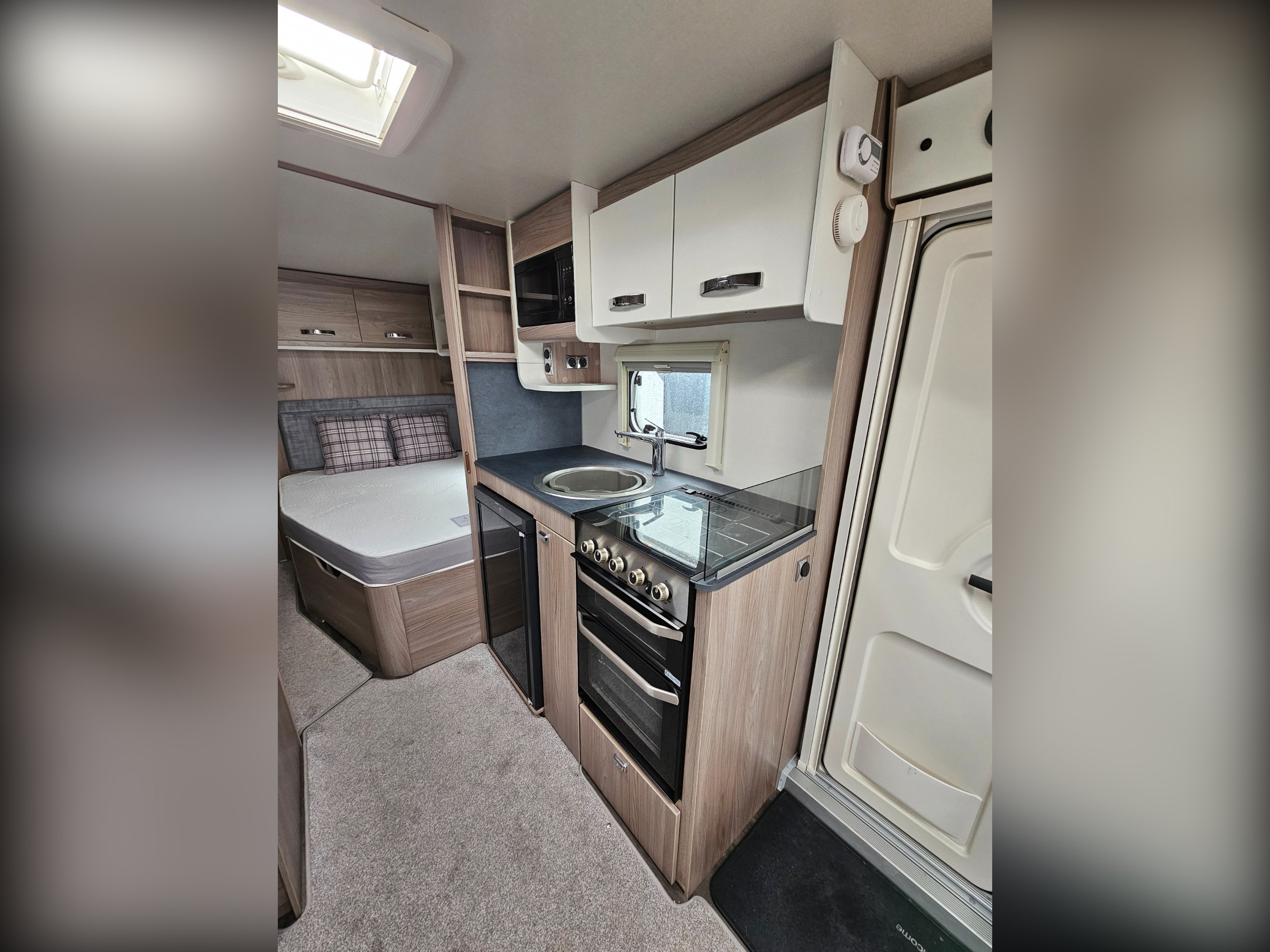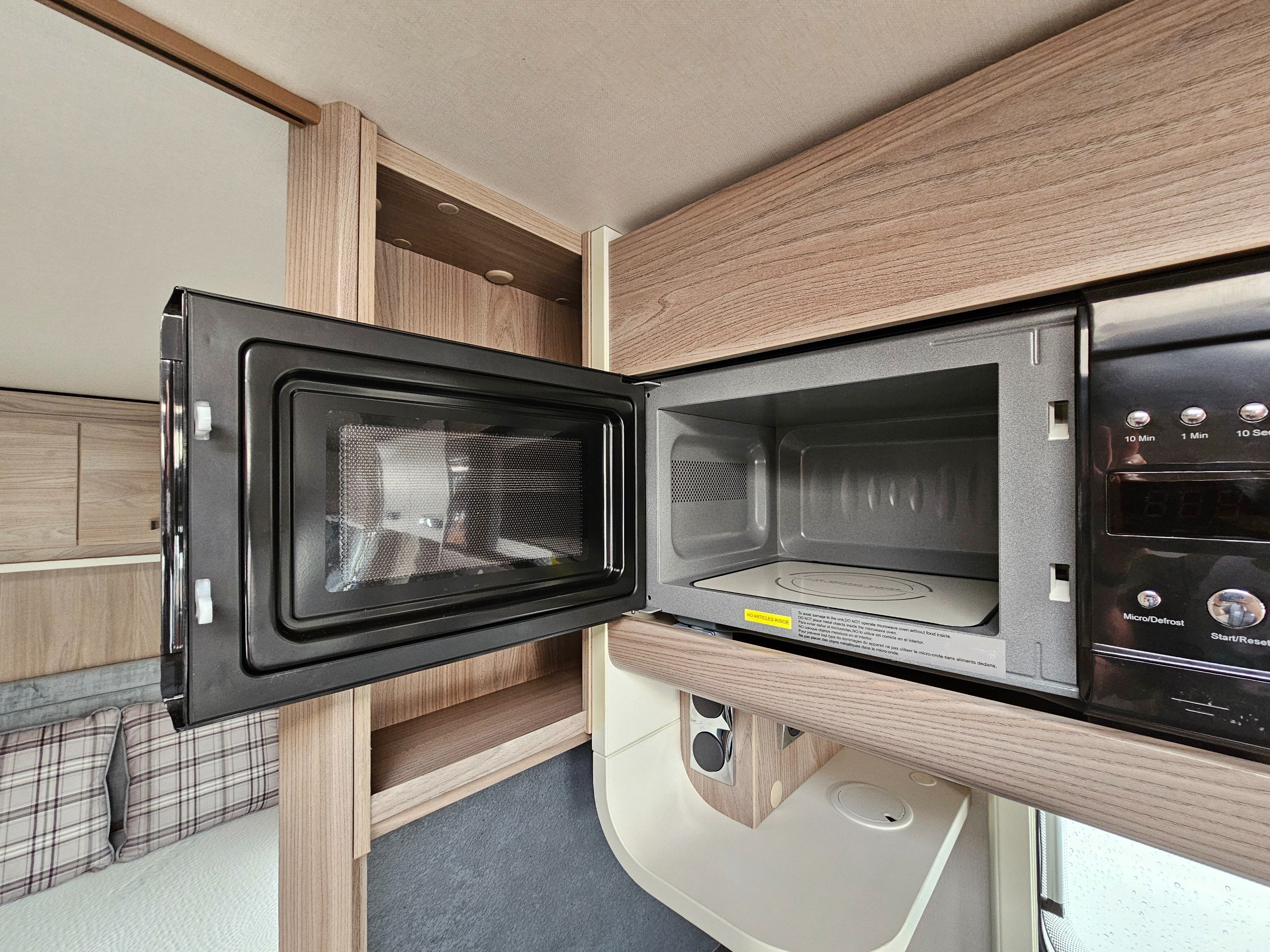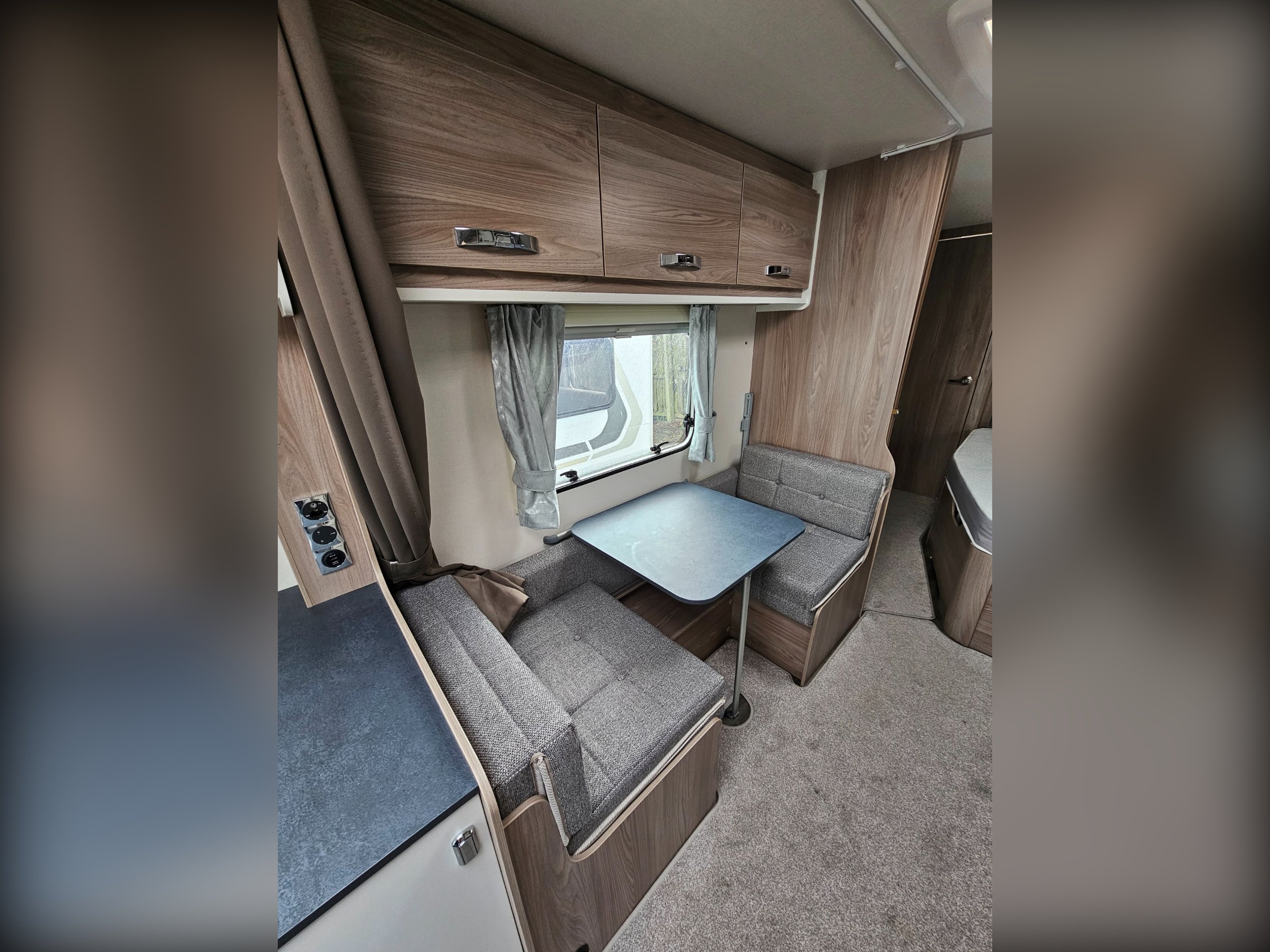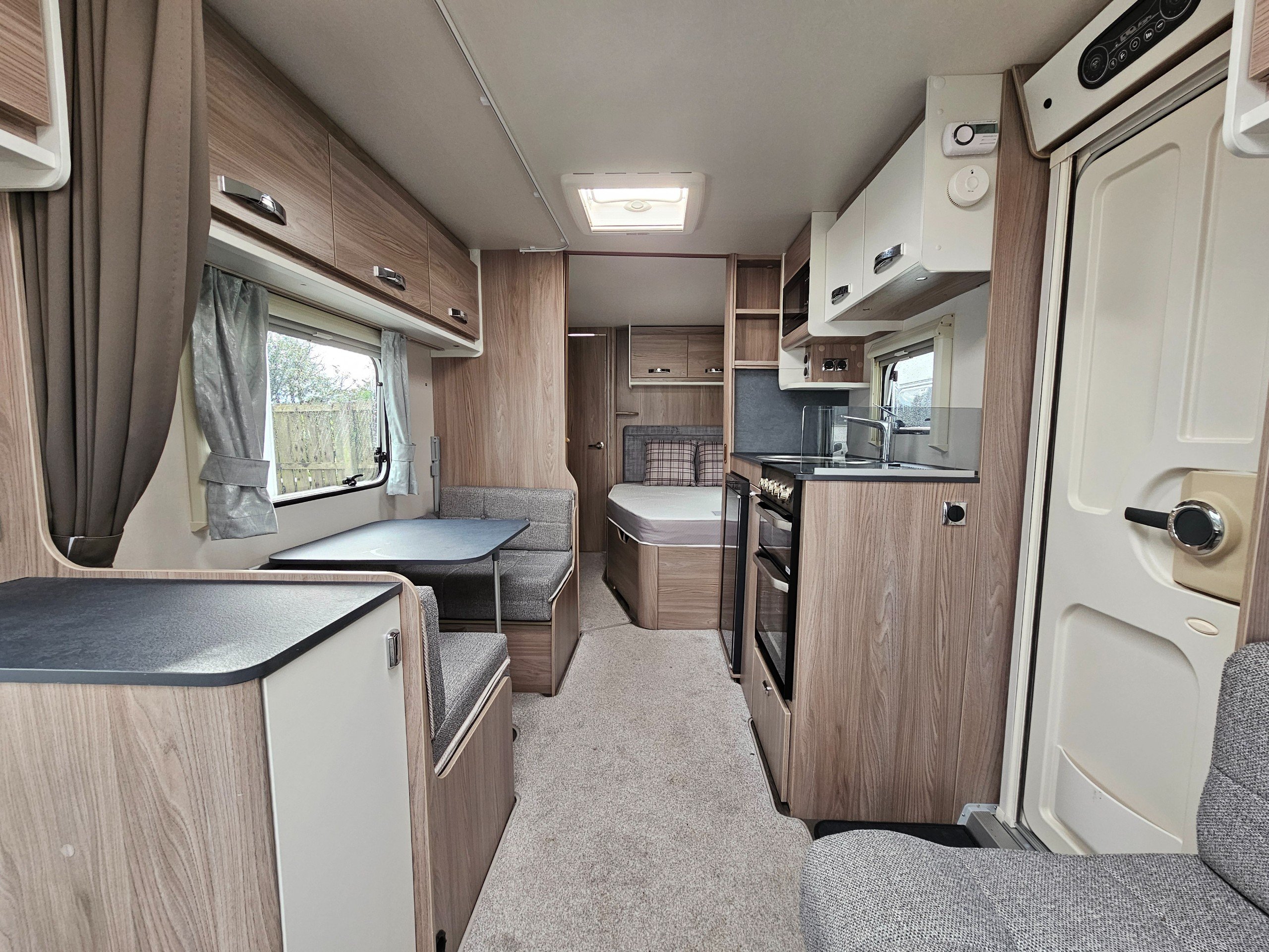 Being a 2023 model, you'll find the same Truma Combi heating system found in current Sprite caravans as well as a simplified control panel above the entrance door. You'll find a JVC, blue-tooth enabled stereo as well as a Maxview directional TV aerial. Microwave and gas cooking options in the kitchen along with a Dometic under-counter fridge/freezer. You'll find a bright and airy fabric option with slate grey worktops.